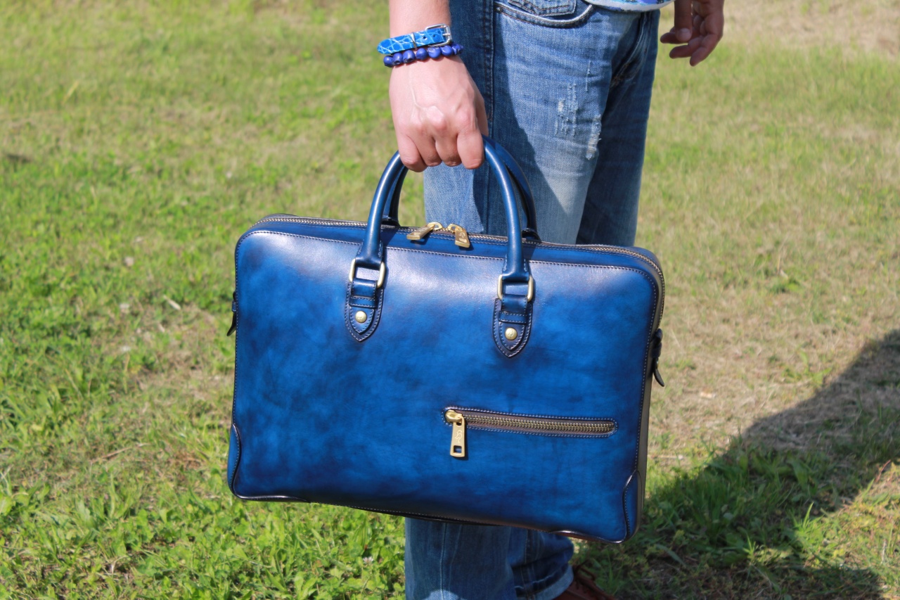 Мужская сумка–портфель ручной работы «Branchini» от легендарной болонской обувной мануфактуры «Branchini Calzoleria». Изготовлена из 100% телячьей кожи высочайшего качества выделки. Сумка окрашена полностью вручную в темно-синий цвет с эффектом патинирования «антик». Детали и декоративные элементы сумки изготовлены из оружейной латуни (молнии, бегунки, заклепки). Сумка застегивается на молнии с фирменными бегунками с изображением логотипа марки в виде буквы «B», и имеет снаружи отделение для небольших документов. С обратной стороны сумка имеет тесненное изображение логотипа марки «Branchini Calzoleria» в виде герба. Внутренняя часть сумки изготовлена из кожи тёмно–бежевого цвета, и имеет одно большое отделение для переноски ноутбука, документов и прочих вещей, дополнительное отделение на молнии для хранения сотового телефона, бумажника, паспорта и прочих документов, и два дополнительных отделения.