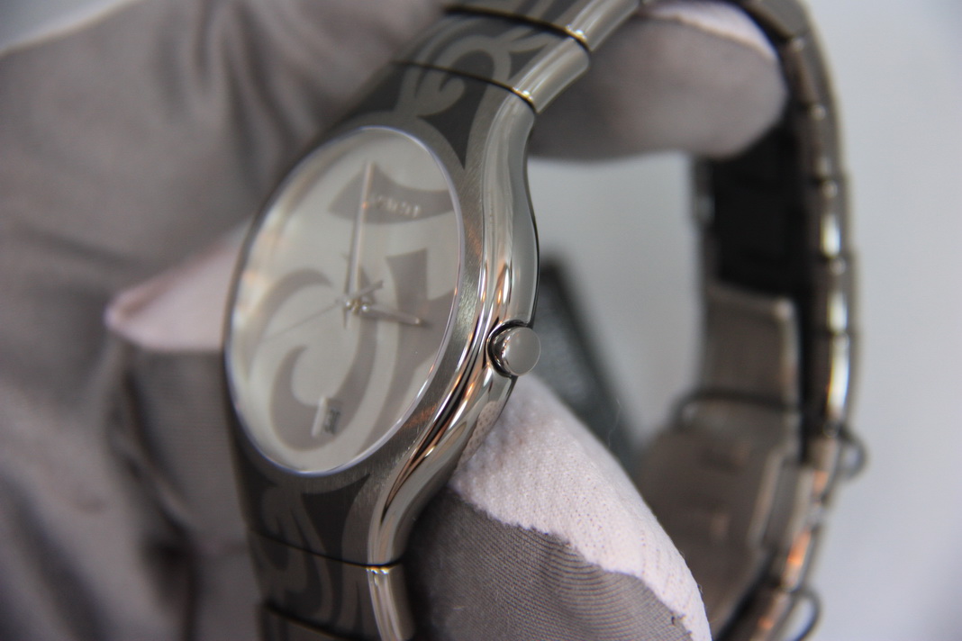 сатинированная керамика с гравировкой, титановая застежка с блокировкой.