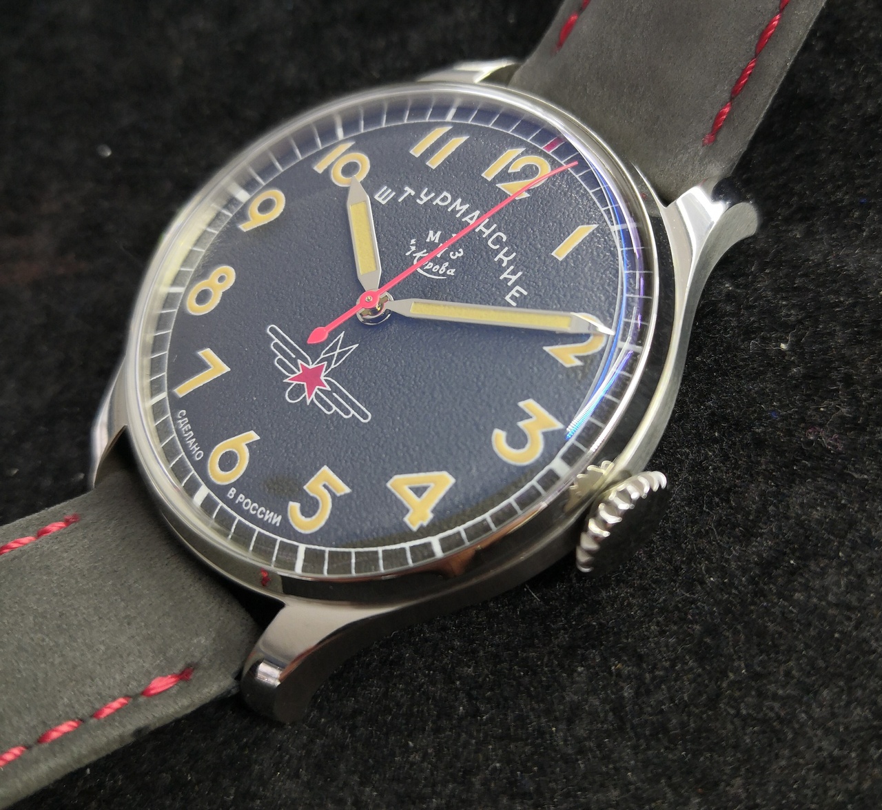“Штурманские” из нашего обзора наименее бастардны (боже, что за слово). Такие выдавали и штурманам, и пилотам. Дизайн — как у аутентичных (правда, новые больше и на калибре “Восток”, которого в оригинале быть не могло). И хоть часы в обзоре темные, под стать SM и Davosa, но в линейке есть светлые, как оригинал.