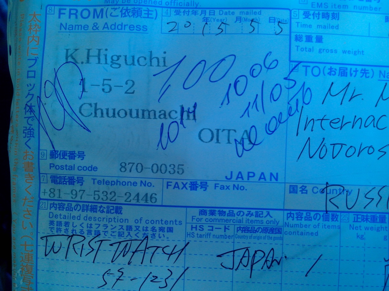 Факт продажи этих часов мне может подтвердить сам Хигучи-сан. На фото квитанция посылки. Паспорт свой могу сфотать и выслать. В общем, абсолютно честные часы.