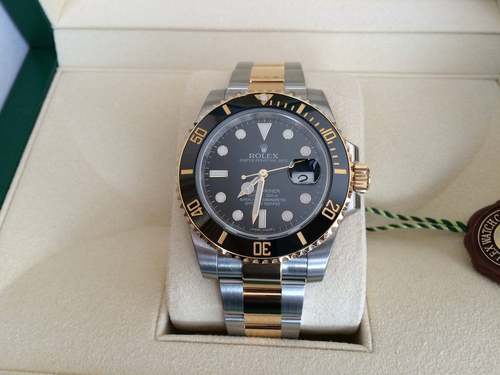 Предлагаю вниманию уважаемого сообщества яркую разновидность культового Субмаринера – модель 116613LN из стали и жёлтого золота с циферблатом и керамическим безелем благородного чёрного цвета.
