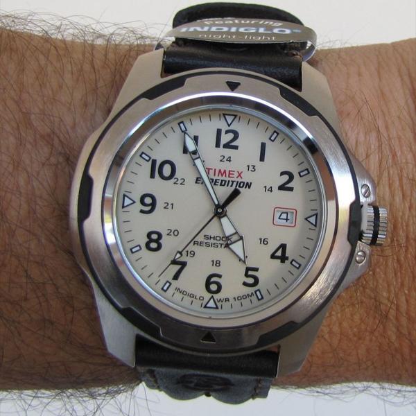 Продам в Москве или перешлю по России по предоплате абсолютно новые мужские часы Timex Expedition 49261 на оригинальном кожаном ремешке. Коробка, бирки, часы никогда не запускались. Куплены два года назад в США впрок - сейчас продаю их и такие же б/у за ненадобностью - давно перешел на Tag Heuer.