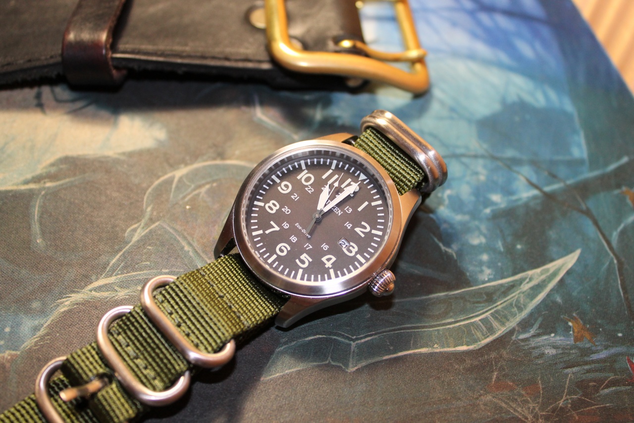 - хочу нейлоновый ремешок, скорее всего из толстой ткани по типу ремешков ZULU, состоящий из 2х частей, с металлическими матовыми вставками в отверстиях ремня и металическими матовыми кольцами под ремень.