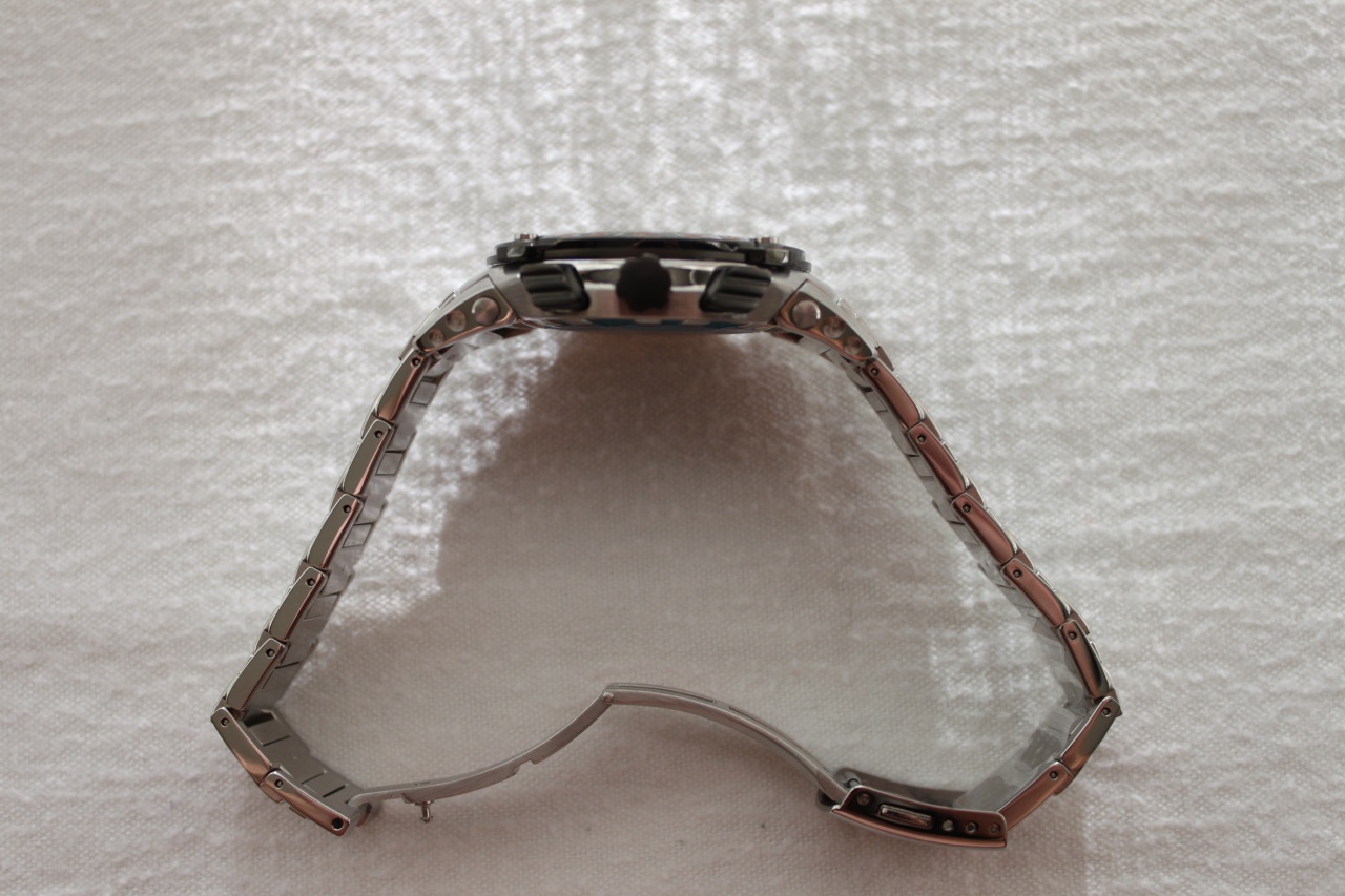Часы-хронограф с секундомером и тахиметром. Ретроградные указатели секунд и минут. Калибр 7T85. Секундомер с точностью показаний 1/5 сек и временем измерения 300 минут. Индикация числа. Задняя крышка с винтовым фиксатором. Корпус и браслет часов выполнены из нержавеющей стали. Функция индикации заряда - EOL.