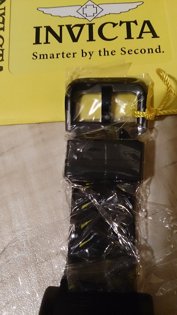 Достаточно мелкая модель по меркам Invicta. За счет пирамидального корпуса часы не выглядят громоздкими на руке. В основании корпус имеет диаметр 48 мм, у стекла - 44 мм. С заводной головкой 53-50 мм. Толщина корпуса - 15 мм. Покрытие корпуса черное - PVD, заводная головка НЕзавинчивающаяся (водозащита 100 м). Ширина посадочного места под ремень - 24 мм. Ремень крепится на обычные шпильки (возможно установить любого, подходящей ширины). Ремень каучуковый, очень мягкий, с желтыми вставками, внутренняя часть ремня имеет тематический рисунок. Стекло Flame Fusion с анти бликом.