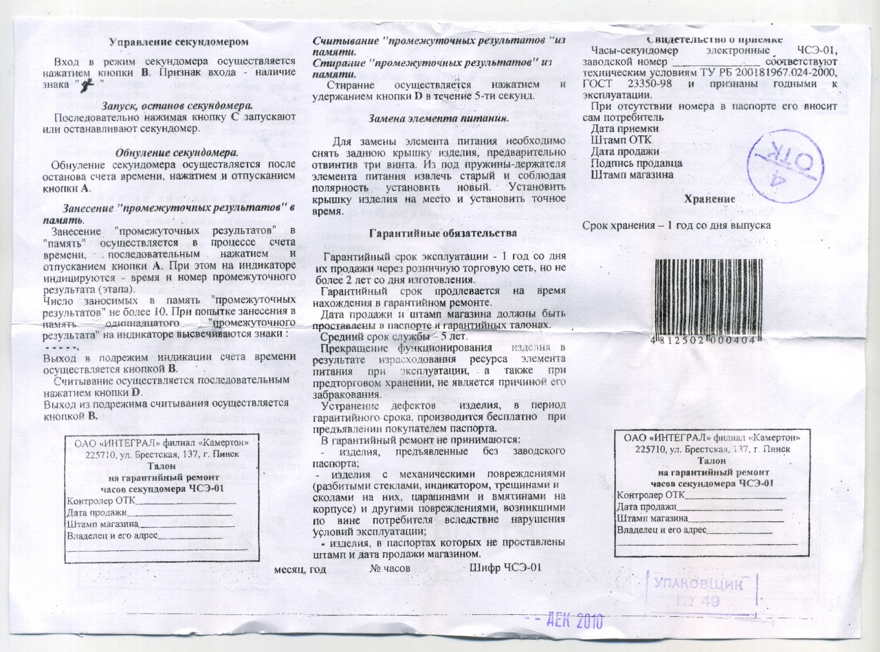 Добрый день. Может у кого-нибудь есть хорошо отсканированная инструкция к секундомеру Электроника 56. Буду очень благодарен если пришлете.