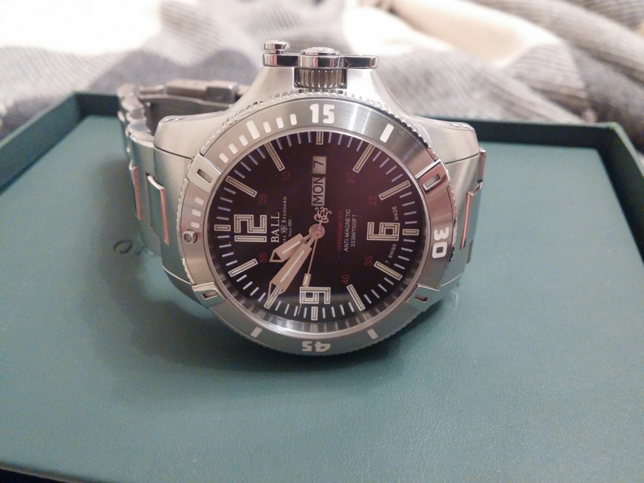 Использовались редко, при смене Акватаймера IWC или классики. Брались ровно в тот промежуток, когда любимые IWC в результате халтуры одной "уважаемой" и дорогой питерской мастерской начали вставать из-за отсутствия смазки. После того, как Латанский вернул их к жизни, Акватаймер снова крепко сел на руку Ball так и не удалось его выжить оттуда, несмотря на все свои достоинства. Посему и продается.