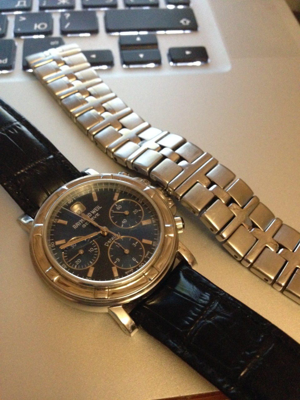 Носил пару месяцев как подарили, с тех пор на полке лежат. Не смог в часы.
