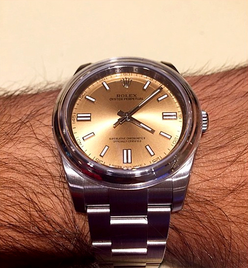 На чем остановились? Мерили OP, DJ, Air King. На роль первой модели от Ролекса, больше всего привлекла новая серия Oyster Perpetual 116000, понравился строгий минимализм со стильными метками, без единой цифры и без даты. Размеры: мерили 34мм (хорошо для жены, но маловато для меня), 39мм (нормально для меня и великоваты для жены), 36мм - золотая середина (идеальны для обеих рук). С размером и моделью определились. Браслет - oyster lock, к сожалению не доступен jubilee, а очень хотелось (ну значит будут на следующих dj). Что можете сказать по поводу этой модели, есть ли какие-нибудь отрицательные стороны?