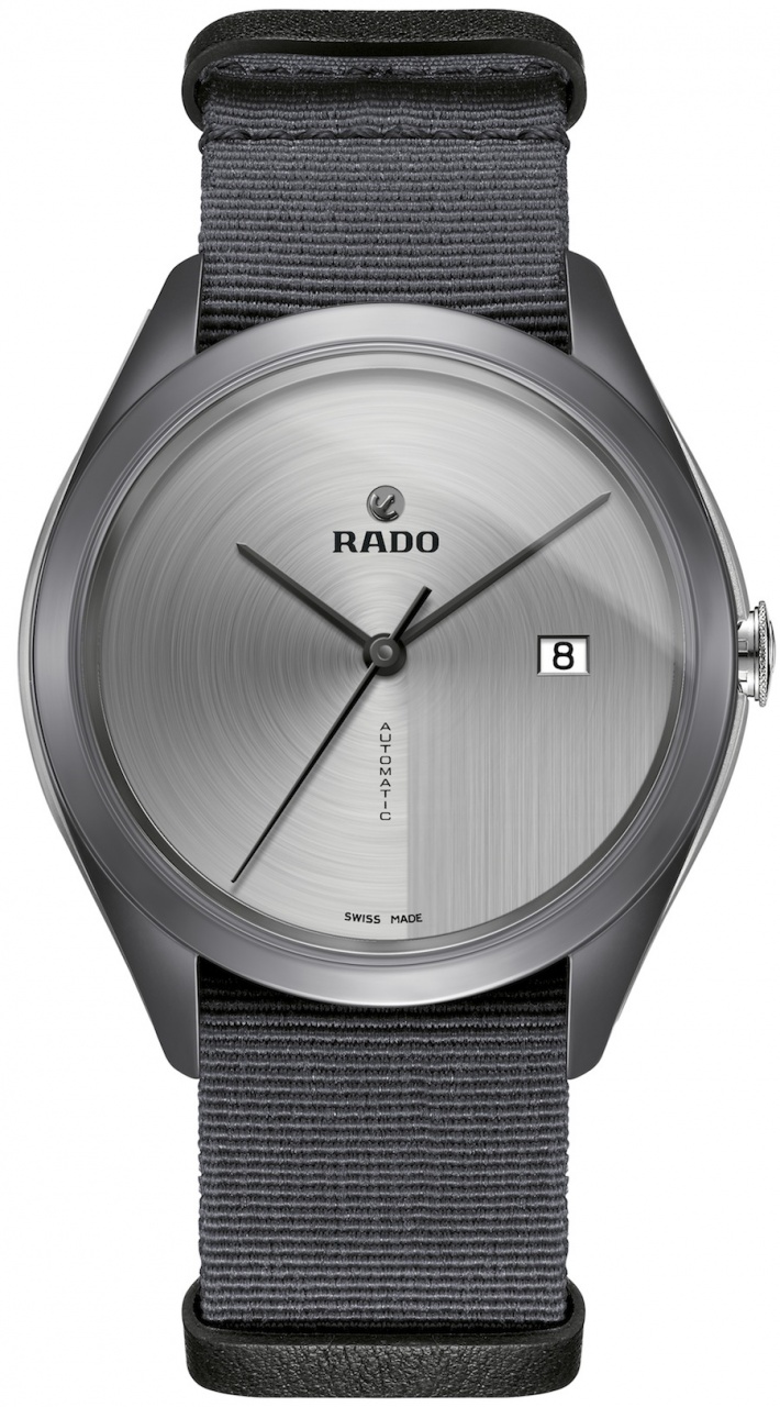 Круглый корпус новинки, изготовленный из нитрида кремния с титановыми вставками, диаметром 43,0 мм, толщиной 11,2 мм, водонепроницаемый до 50 метров. На торце рифленой заводной головки, расположенной на 3 часах, выгравировано изображение якоря - эмблемы бренда Rado. Сапфировое стекло защищает серый циферблат с циркулярным сатинированием, без разметки, со стрелками черного цвета. На 12 часах укреплен подвижный якорь - эмблема бренда. Модель оснащена швейцарским автоматическим механизмом ЕТА A31.L01, выполненным из анодированного алюминия, на 21 камне, с балансовой частотой 28800 полуколебаний в час (4 гц), запасом хода 64 часа, функциями индикации часов, минут, секунд (посредством соответствующих центральных стрелок) и даты (посредством соответствующего цифрового указателя в прямоугольной апертуре, расположенной на 3 часах). Поставляется на сером ремешке НАТО.