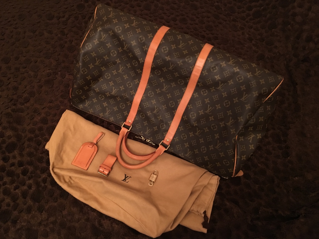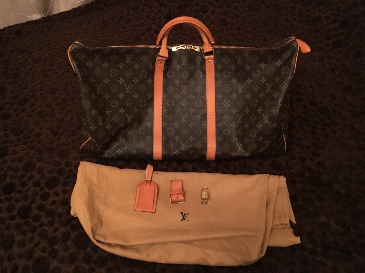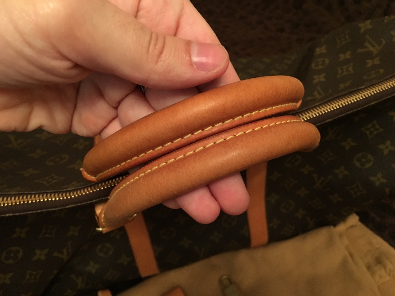 - Канва Monogram, коричневая подкладка из полотна, отделка из натуральной кожи теленка;