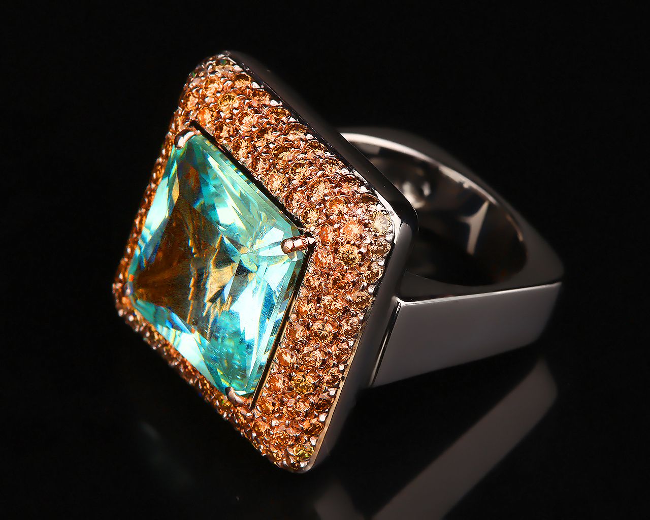 ЗОЛОТОЕ КОЛЬЦО С АКВАМАРИНОМ И БРИЛЛИАНТАМИ 1.9CT