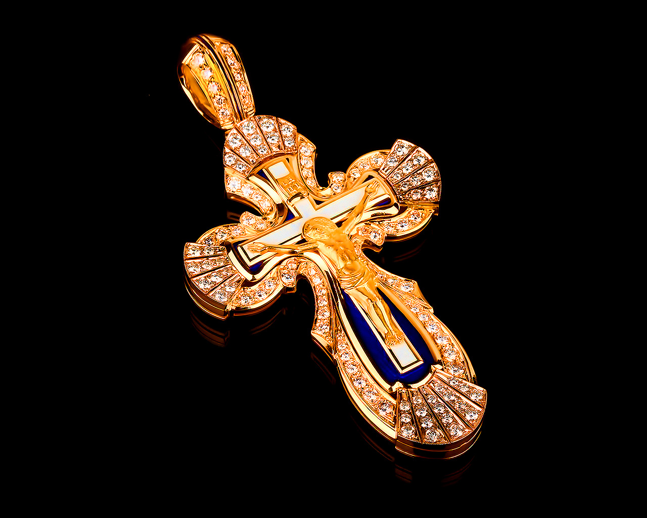 ЗОЛОТОЙ КРЕСТ С ЭМАЛЬЮ. БРИЛЛИАНТАМИ 2.97CT