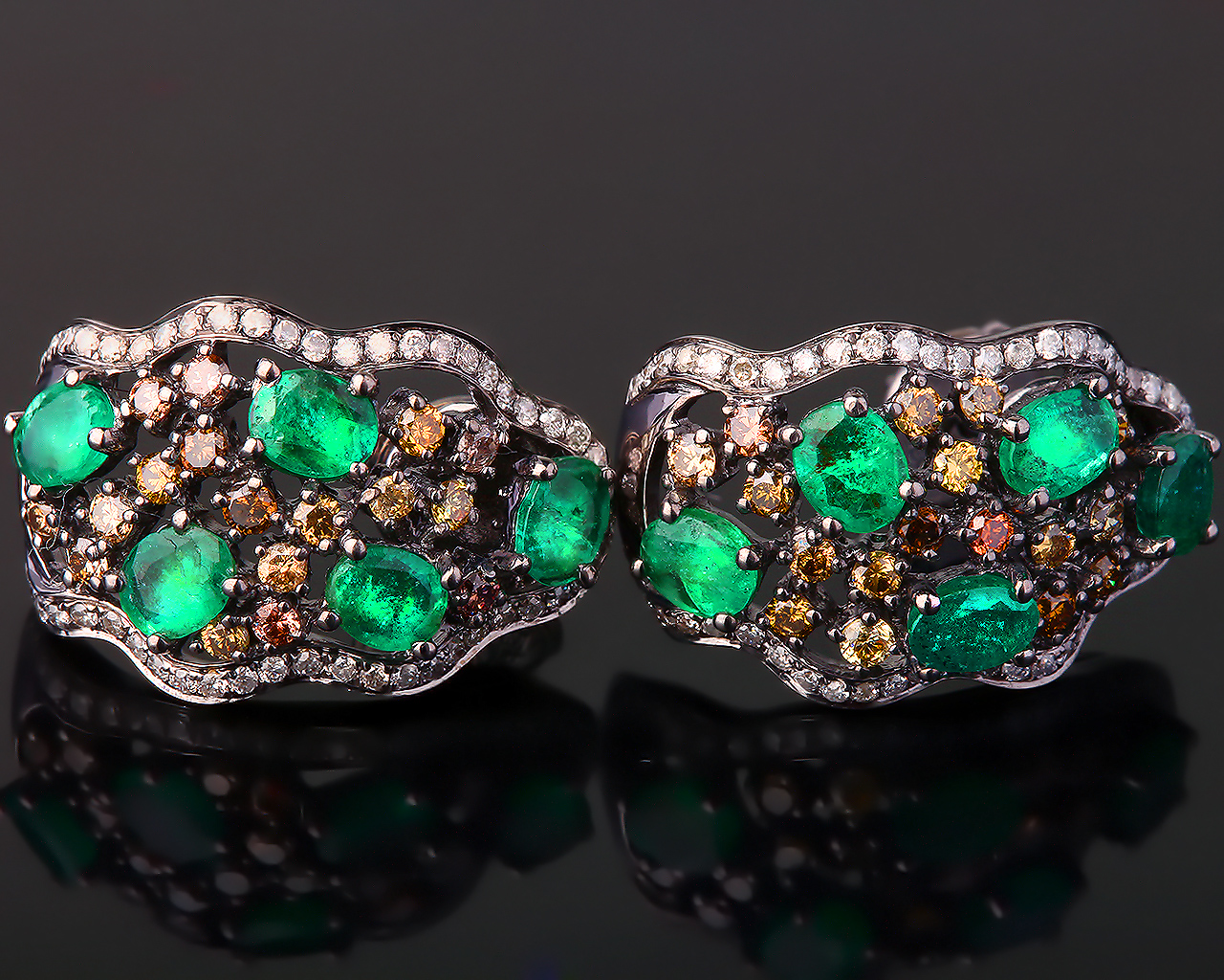 Бриллиантовые серьги 1.63ct. с изумрудами 1.45ct.