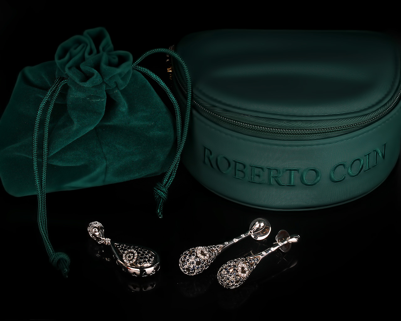 Roberto Coin бриллиантовые серьги и подвеска.