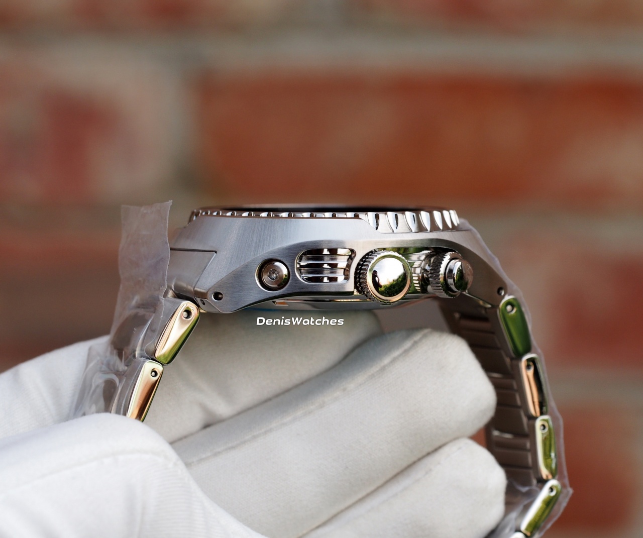 Стальной корпус с мощным литым защитным ТУНА-кожухом, как на внутрияпонских дайверах серии MarineMaster, все выполнено в практичном сатине