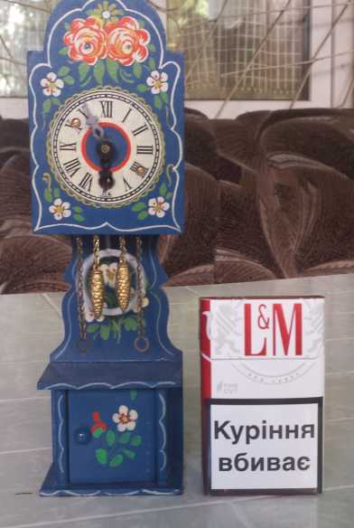 Механизм с креплением двумя латунными винтиками через циферблат, нарисованый на передней панельке фанерного корпуса в высокие гаечки двух из четырех стяжных колонок платин. Платины толщиной не более 0,5 мм. Ключик - типа от заводной детской машинки. Конструкция механизма - обычный механизм маятникового "Янтаря" без боя, только существенно миниатюрнее. Спуск крючковый, ходовое колесико - в точности как механизма боя обычного будильника - с треугольными зубчиками.