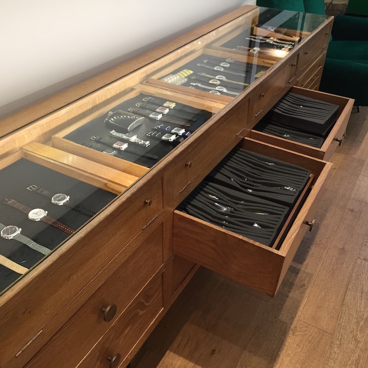 Магазин создает очень приятное впечатление, этакий Джеймс Бонд стиль. Множество старых часов, ваз, каталогов и книг.