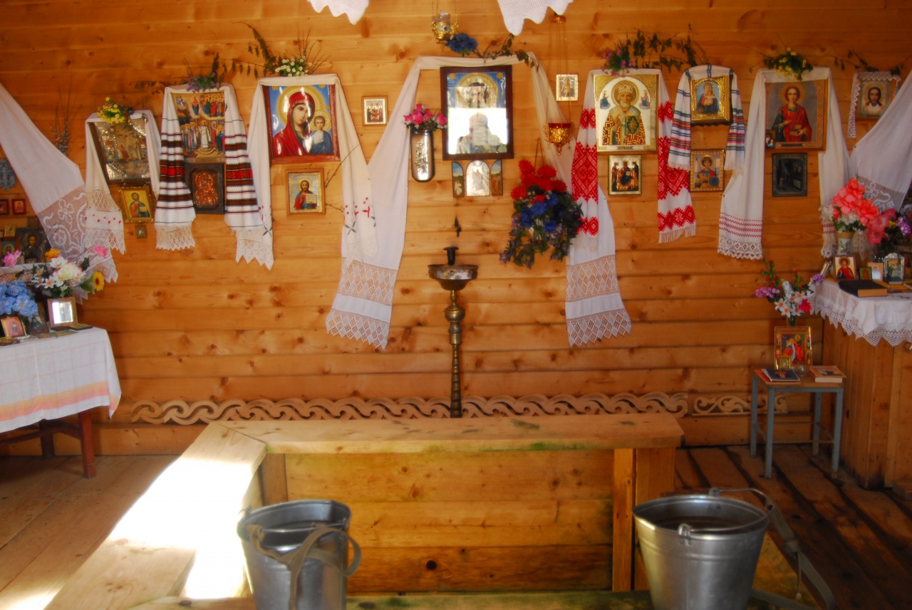 Собственно источник с часовней. Икона с царской семьёй и здесь присутствует.