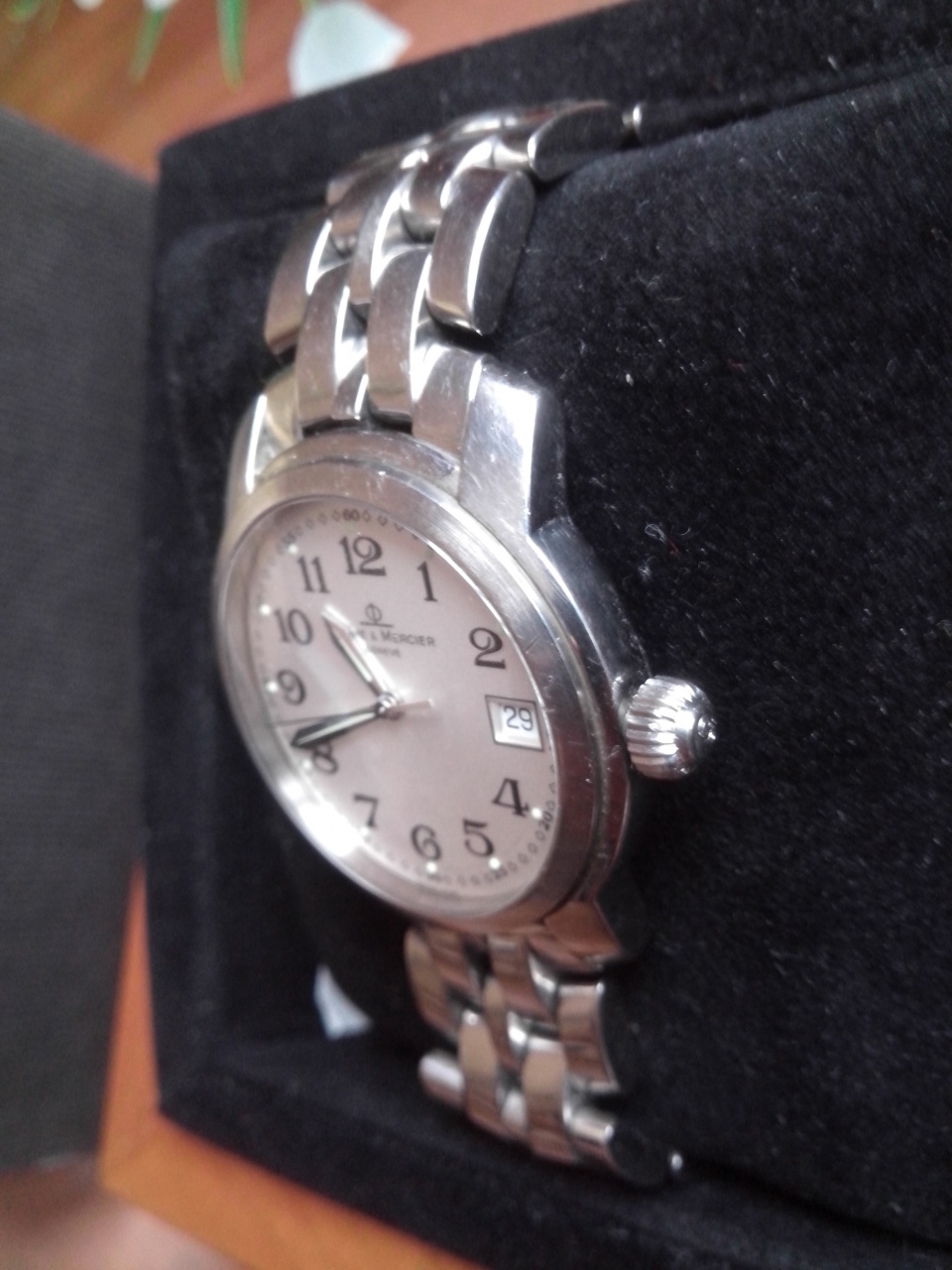 Модель MVO45214, ref 90949. Куплены в 2009 году во Франции. Документы не сохранились, есть только коробка. Водозащита 50 м. завинчивающаяся головка и крышка. размер 39 без з.г. серебренные сегменты. купольный сапфир в виде линзы. стальной , родной браслет на запястье до 18 см. сталь 904L, как в ролекс. Хорошее, рабочее состояние, недавно поставил новую батарейку. Снизил цену, ввиду минусов: мелкие незначительные царапинки, легко устраняемые полировкой, которая ни разу не делалась, а также следует поставить ключ-головку, на фото видно, что головка слегка выдвинута (не стал менять, поскольку это абсолютно это ни на что не влияет, в связи со слабой водозащитой. Знаю, что стоимость ремонта, включая работу, - 3500. Готов устранить этот нюанс, но стоимость увеличится пропорционально затратам на ремонт (+3500)). Любые проверки. Рассмотрю варианты обмена.