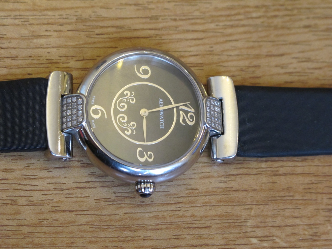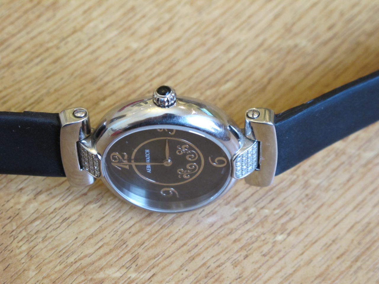 Продаю часы женские Aerowatch Harlequin Daimond Flowers. Swiss made. Ref.№ 33932-AA04-DIA. Куплены в 2011г, носились мало, состояние оч.хорошее. Механизм Ronda 1062 кварцевый. Источник энергии - батарейка (в декабре 2016г установлена новая, срок службы 4-5 лет). Корпус из нержавеющей стали 316L, декорированный 38 бриллиантами 0,29k (на корпусе есть малозаметные потертости и царапинки, которые убираются полировкой). Заводная головка с кабошоном из черного агата. Циферблат из черного натурального перламутра (смотрится очень хорошо, переливается на свету). Цифры - арабские, стальные. Диаметр корпуса - 34 мм., толщина - 9 мм. Стекло - сапфировое, изогнутое (в идеальном состоянии). Ремешок - комбинированный сатин/кожа ручной работы, новый (заменен в январе 2017г, с ним часы на руку не одевались). Водозащита - 5 Atm. Коробка - есть. Отправлю в любой город РФ.