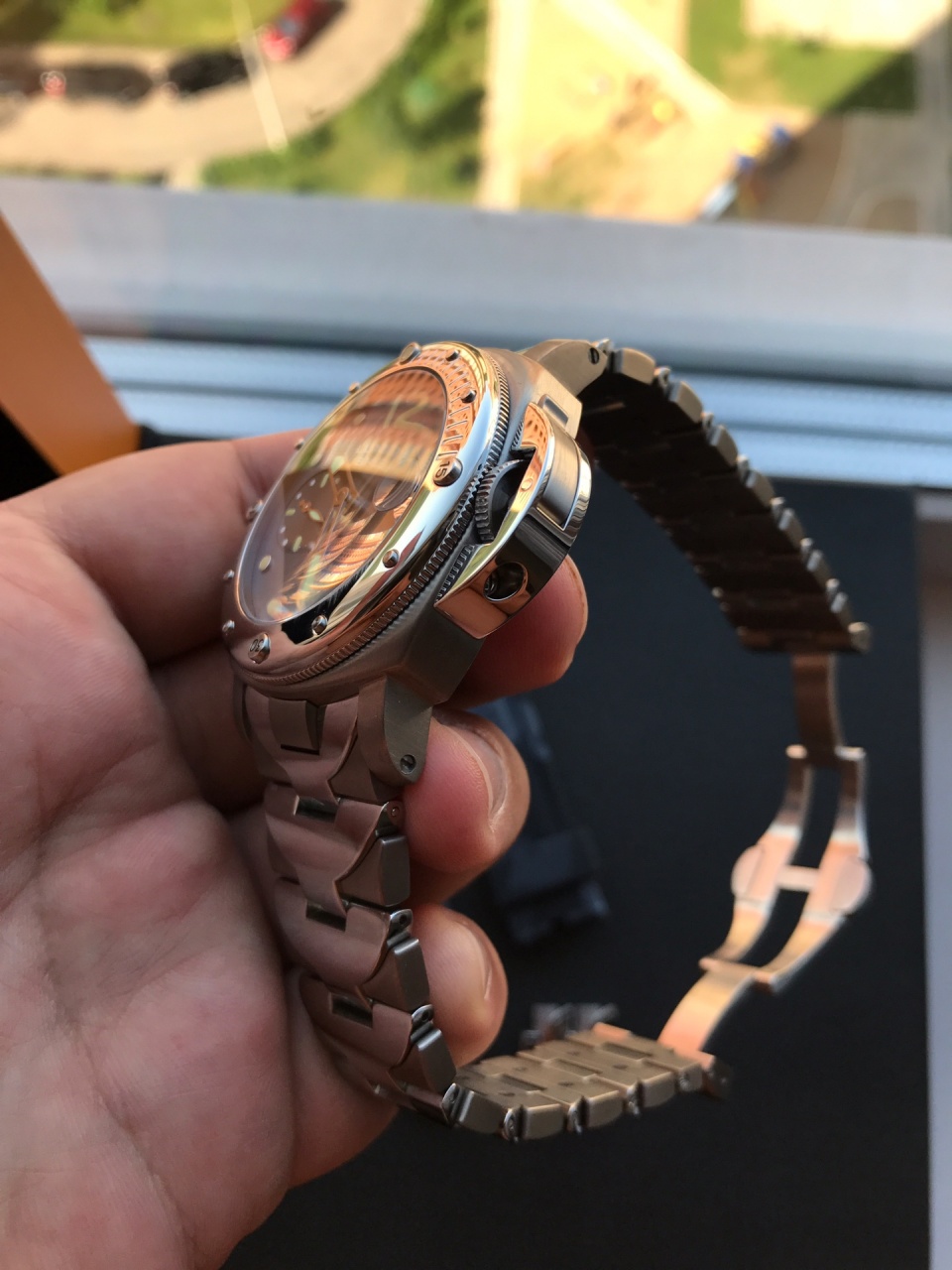 Корпус и браслет комбинированные Титан+Сталь. AISI 316L Полированная сталь и Грубый Титан