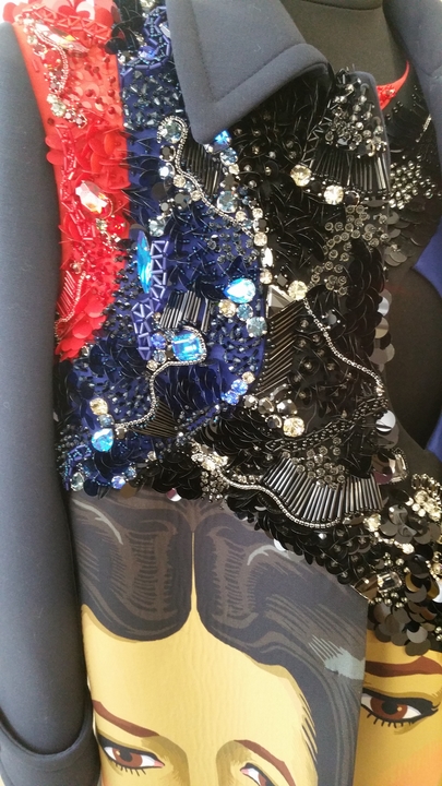 декорировано декоративными объёмным принтом, бисером, пайетками и