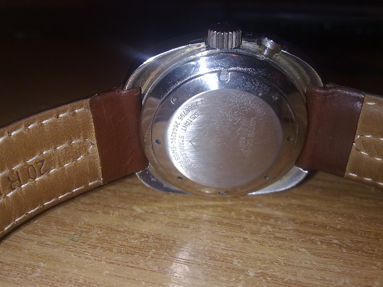 Циферблат зеркально-полосатый хамелеон(меняет цвет в зависимости от освещения, от практически черного -темно зеленого - бирюзового, голубого-серого, с разной интенсивностью полос цвета), что довольно трудно описать, похоже на Geneve полосами. Модель в очень редком квадратном корпусе выпускались с 1969 по 1973 год, данная модель 1970 года.