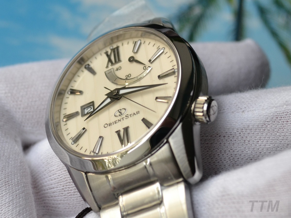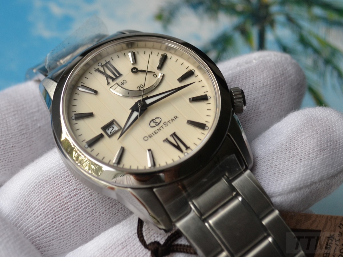 Кремовый циферблат, стрелки и индексы с люминесцентным покрытием.