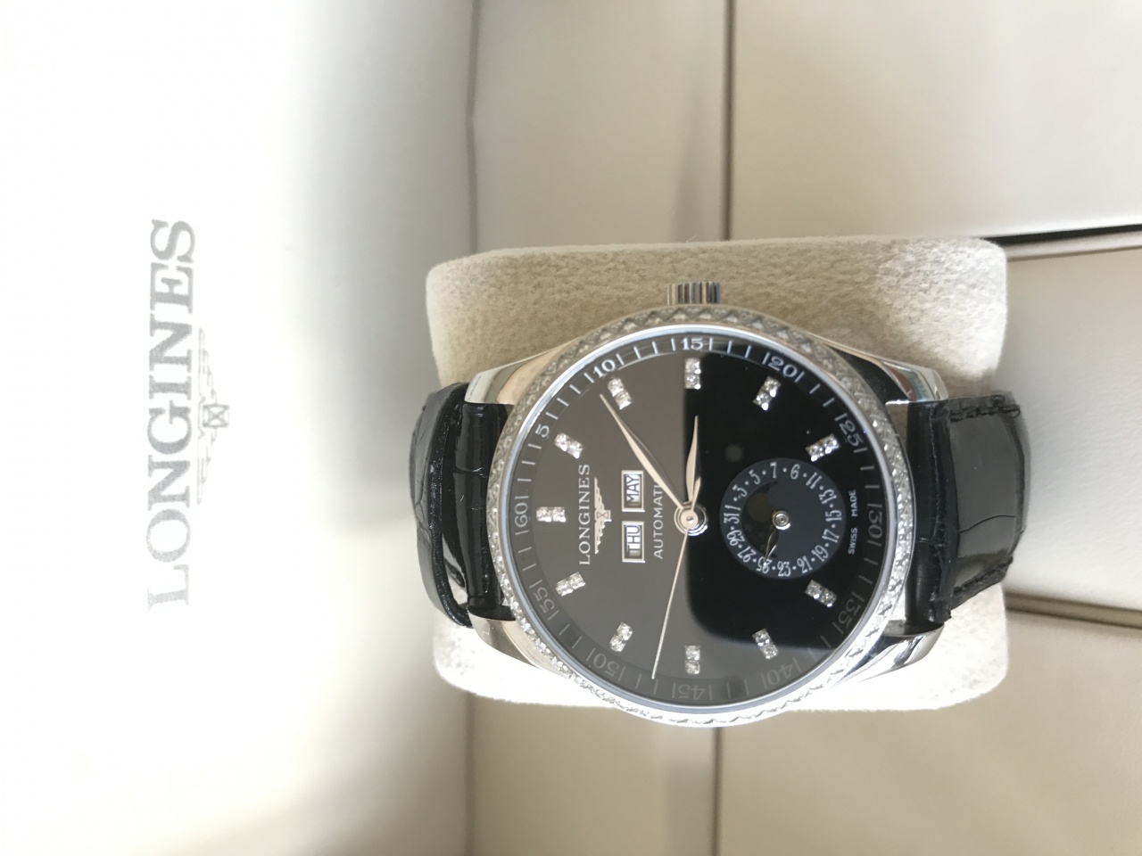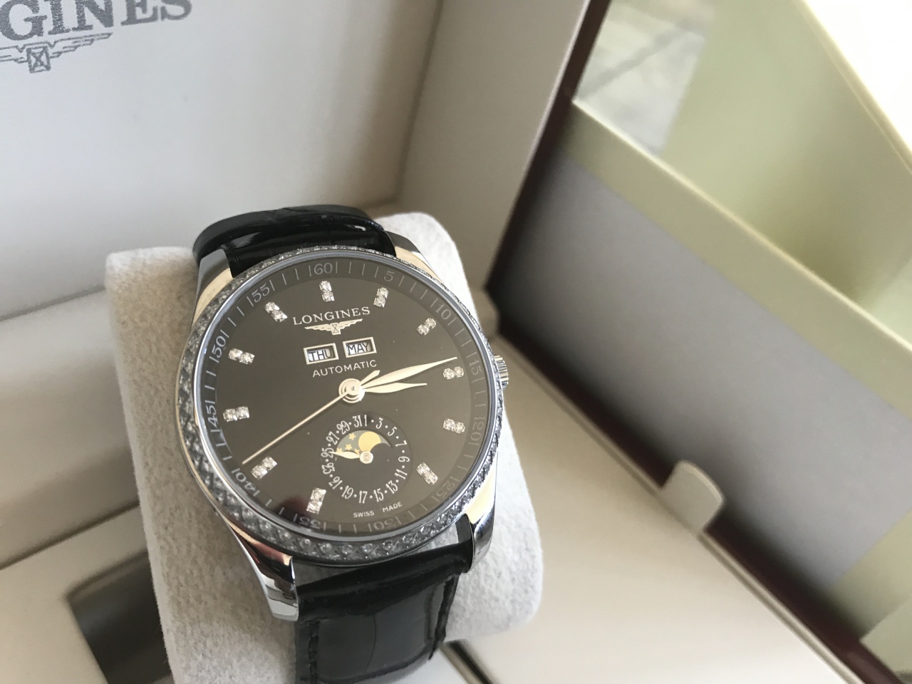 Корпус из нержавеющей стали, сапфировое стекло, механические часы с автоматическим подзаводом, диаметр 36 мм, прозрачная задняя крышка, декорирование - 22 бриллианта, 0,088 ct и 100 бриллиантов, 0,0685 ct, кожаный ремешок, указатель фаз Луны, секундная стрелка, дата, водозащита до 3 атм.