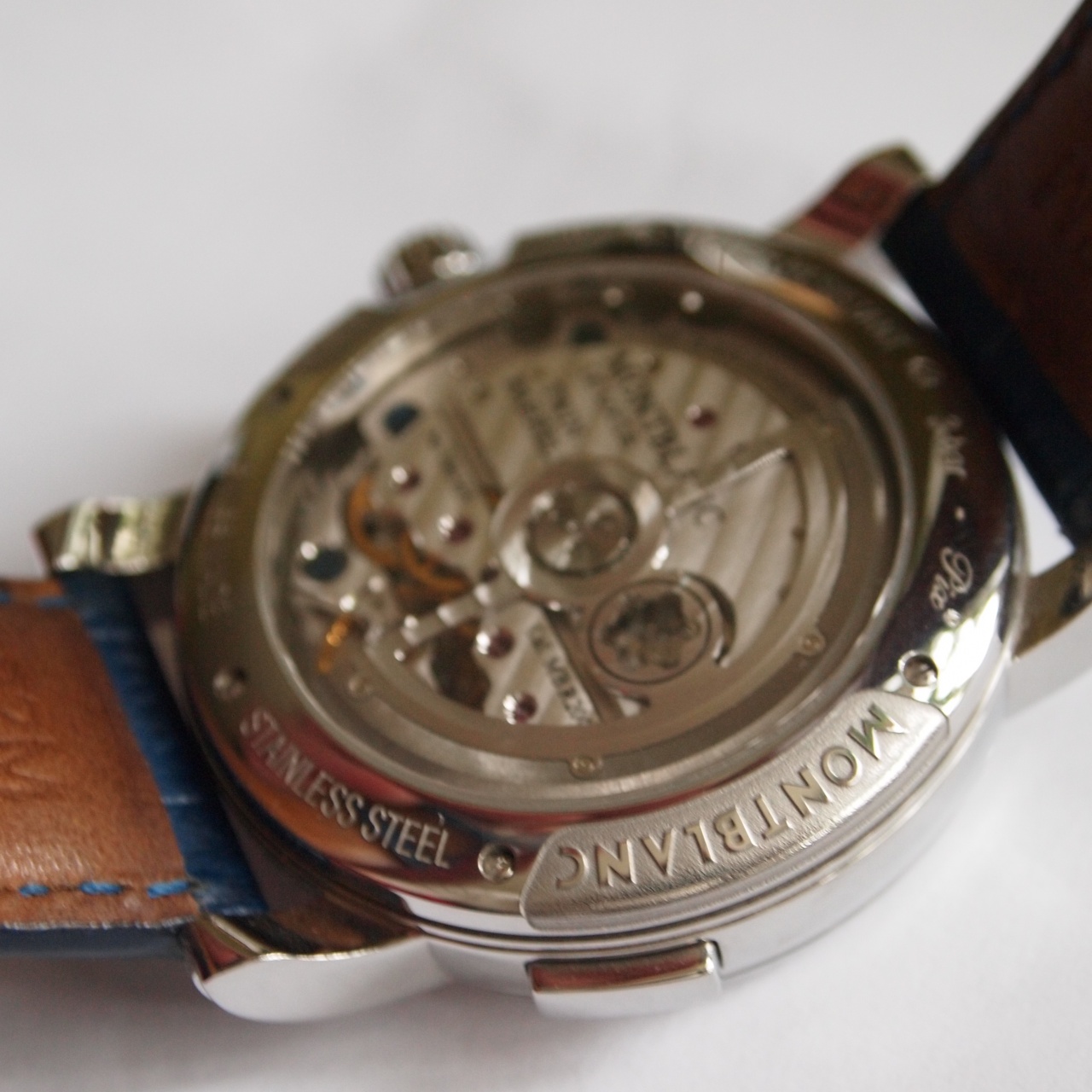 Механизм полностью разработан и исполнен на Montblanc (тот же концерн, что и Panerai, IWC, Vacheron, Roger Dubuis…) Очень богатый набор функций – день/ночь, GMT с второй часовой стрелкой, календарь, хронограф…) Рекомендую как оригинальный detour от некоих устоявшихся стандартов. Универсальны - костюм и casual.