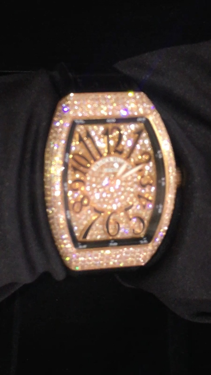 Franck Muller в 2017 году презентовал свою роскошную модель Vanguard Lady Quartz 35 mm Rose Gold Diamond Pave V 35 QZ D CD 5N.NR DIAM.NR 5N, которая была выполнена из драгоценного розового золота, полностью украшена бриллиантами, включая корпус, безель и даже поверхность циферблата.