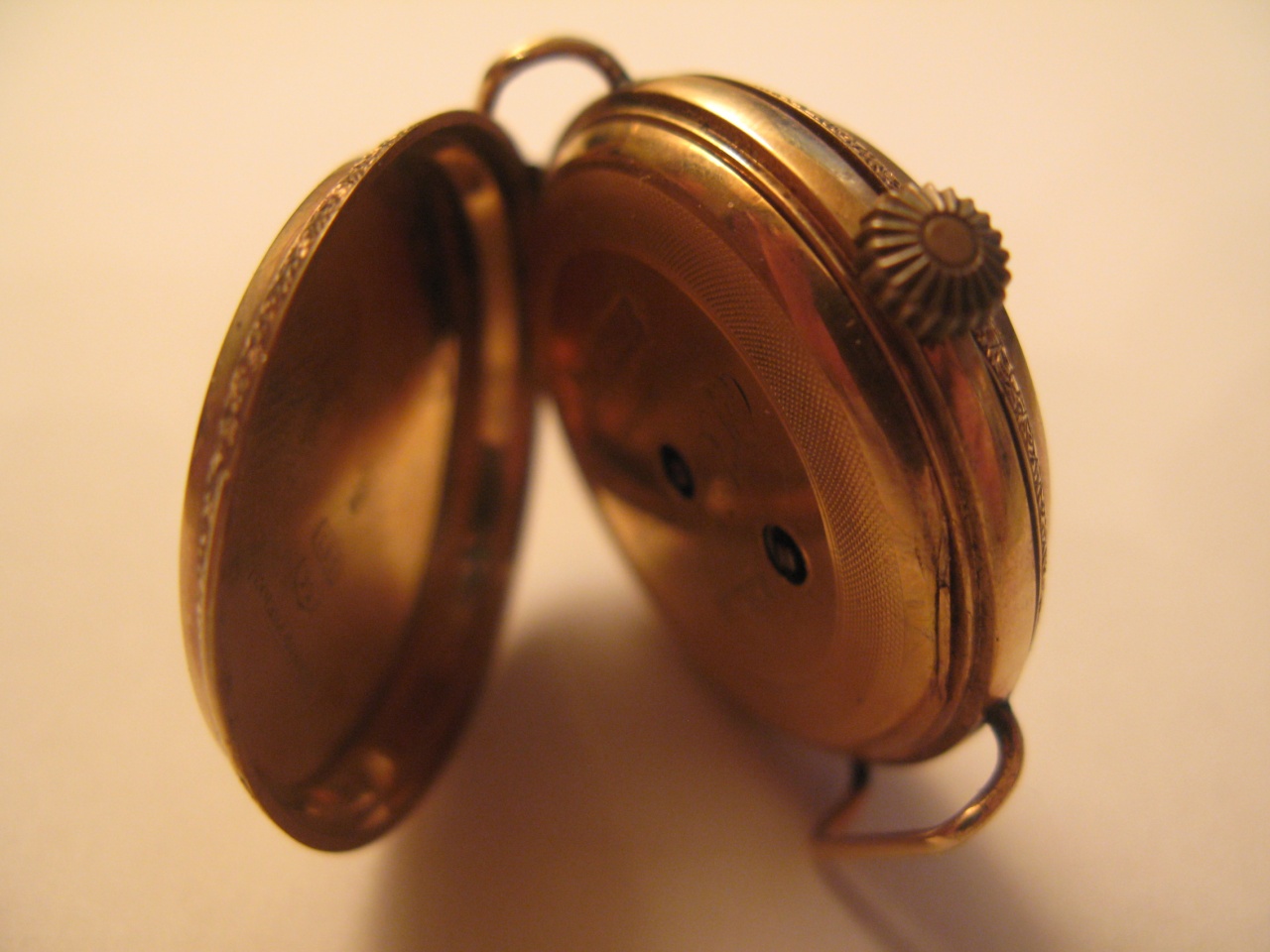 Диаметр часов Вы не указали, но они очень похожи на "перепиленные" женские ювелирные корсетные часы. Часы вероятно были трехкрышечными и ставка в верхнюю крышку утрачена. Механизм на цилиндровом спуске с ключевым заводом.