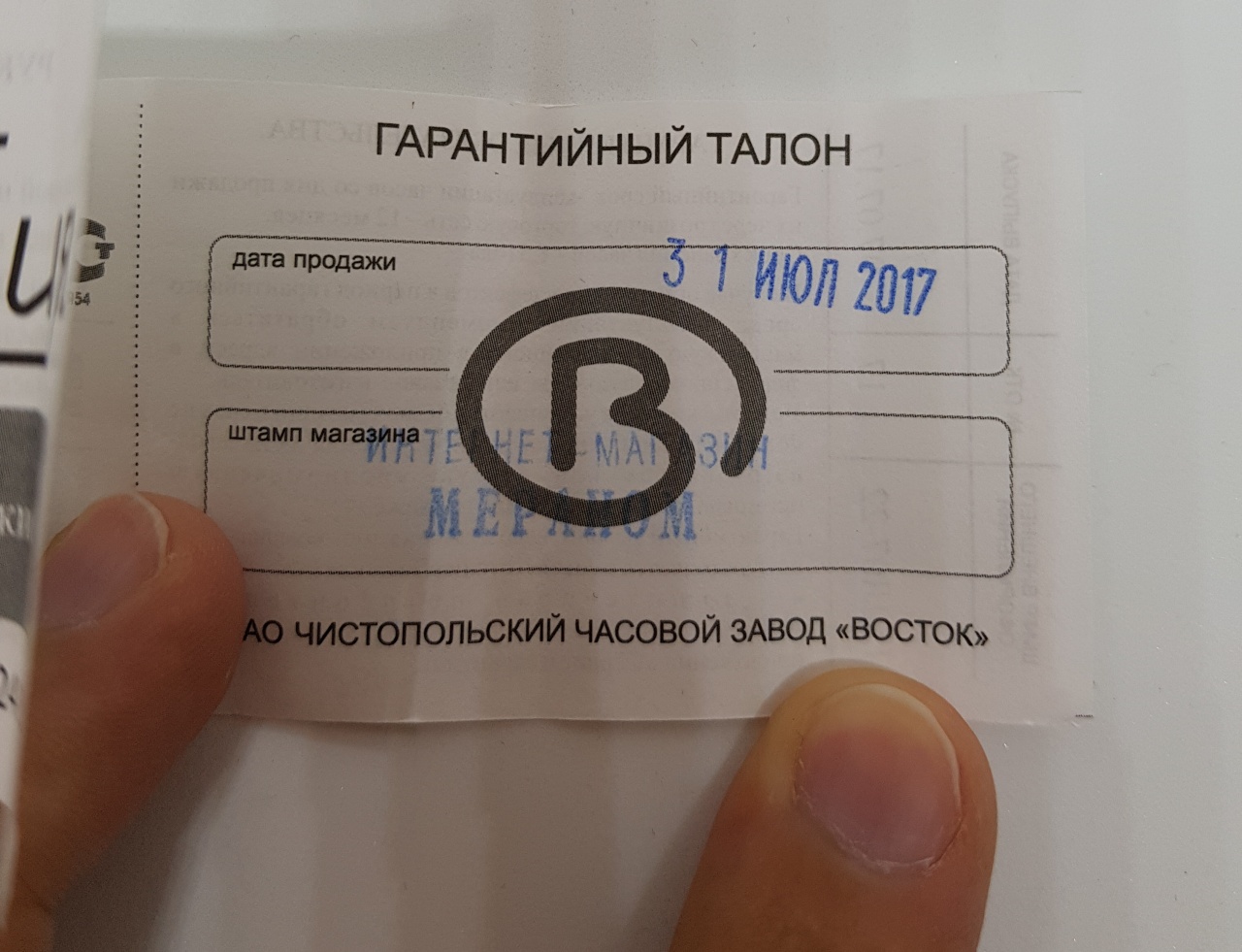 Гарантия до 31.07.2018