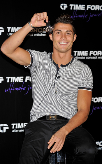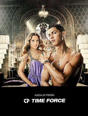 Криштиану Роналду тратит свободное от основной работы (то есть, от футбольных матчей и тренировок) время очень выгодно. Он продолжает зарабатывать деньги своим телом - например, рекламируя часы Time Force.