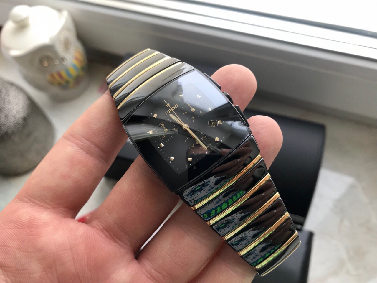 Продам шикарные мужские часы Радо. Знаменитая флагманская модель в лучших традициях всемирно известной швейцарской марки. Корпус и браслет из керамики, вставки из чистого золота 750 пробы. На руке выглядят потрясающе! Несомненно, подчеркнут статус своего владельца. Узнаваемость 100%-я. Станут достойным пополнением любой часовой коллекции, потому что имеют яркий эксклюзивный дизайн, не схожий ни с одной другой маркой.