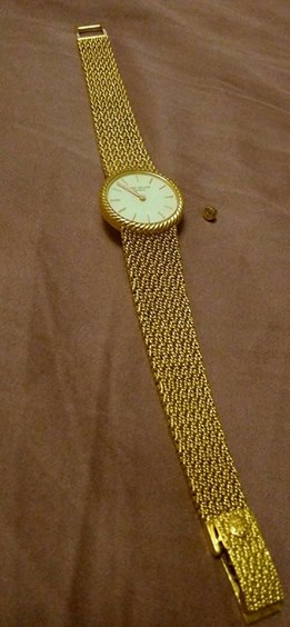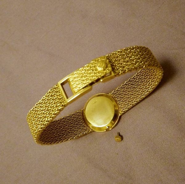 Patek Philippe & Cie ,Geneve, no.1406196,case no.2798281 ref.no.4512/1,год производства 1980. Оригинальные золотые женские механическе часы 18k yellow gold lady's wristwatch with an integrated Patek Philippe 18k yellow gold woven braided bracelet . Семейное наследство,куплены в 1982 году.К сожалению документов и коробки не существует. Толщина 6мм,диаметр 21мм,длина составляет с браслетом около 160 мм ,сапфирное стекло ,весь 50 гр.В отличном рабочем состоянии,очень мало изношены,отличан механизм,недавно сломалась переводная головка.Ремонт в Патековом сервисе стоит 500 еура.Часы прошли оценку и цена сформирована по состоянию на данной момент.