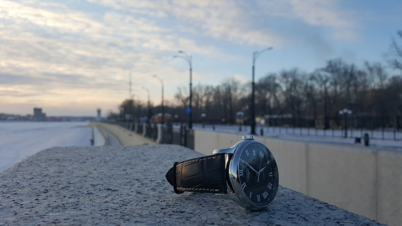 Через пару часов после покупки и отмечания вкусными стейками в компании супруги, решил устроить моим Лонжинам небольшой фотосет) Тем более, именно этой модели тут на форуме я не видел, да и не часто встретишь часы этой марки на фоне поднебесной! Также на фото Лонжин возле памятника невозмутимому коту, благовещенской ротонды, в машине и с моим таксом)
