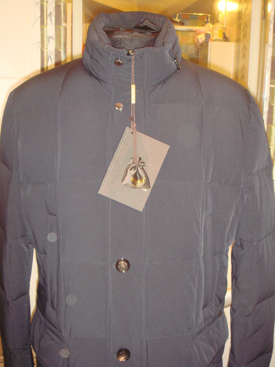 Продается новый стильный мужской зимний пуховик бренда MOORER превосходного исполнения, товар итальянского производства, синоним высокого качества и креативности, голограмма, глубокого темно-синего цвета, простеганный с двух сторон, воротник стойка, в котором скрыт капюшон, воротник с внутренней стороны отделан шерстяным трикотажем, застегивается на кнопки, однобортная модель, спереди застегивается на молнию, пуговицы с логотипом бренда, спереди карманы с клапанами, над ними два кармана на молнии, два боковых прорезных кармана, внутренние карманы на молнии, пуговицах, внутри 100% гусиный пух, состав: 88% полиамид, 12% полиуретан, все бирки прилагаются , гарантированный 100% оригинал, размер 56(IT) производство Италия
