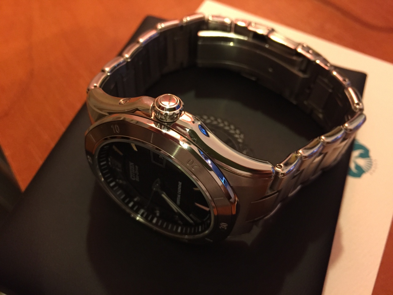 Приветствую всех поклонников часов фирмы Citizen! Пару недель назад совершенно случайно стал счастливым обладателем данных часов . Просто зашел поглазеть в часовой бутик, где работает мой товарищ, он предложил любую модель из Сигнатур коллекшн по специальной цене. Сначала я померил пару механических Октавий и Гранд Классик, красиво, но хотелось что-то на кварце, затем трехстрелочник COURAGEOUS BL1258-53L, вроде неплохие часы, но цифер с радужным переливом, как по мне , немного несерьезно смотрится для дайвера, но в целом мне часы понравились, хороший калибр да и сделаны качественно, но хотелось что-то посдержанней.