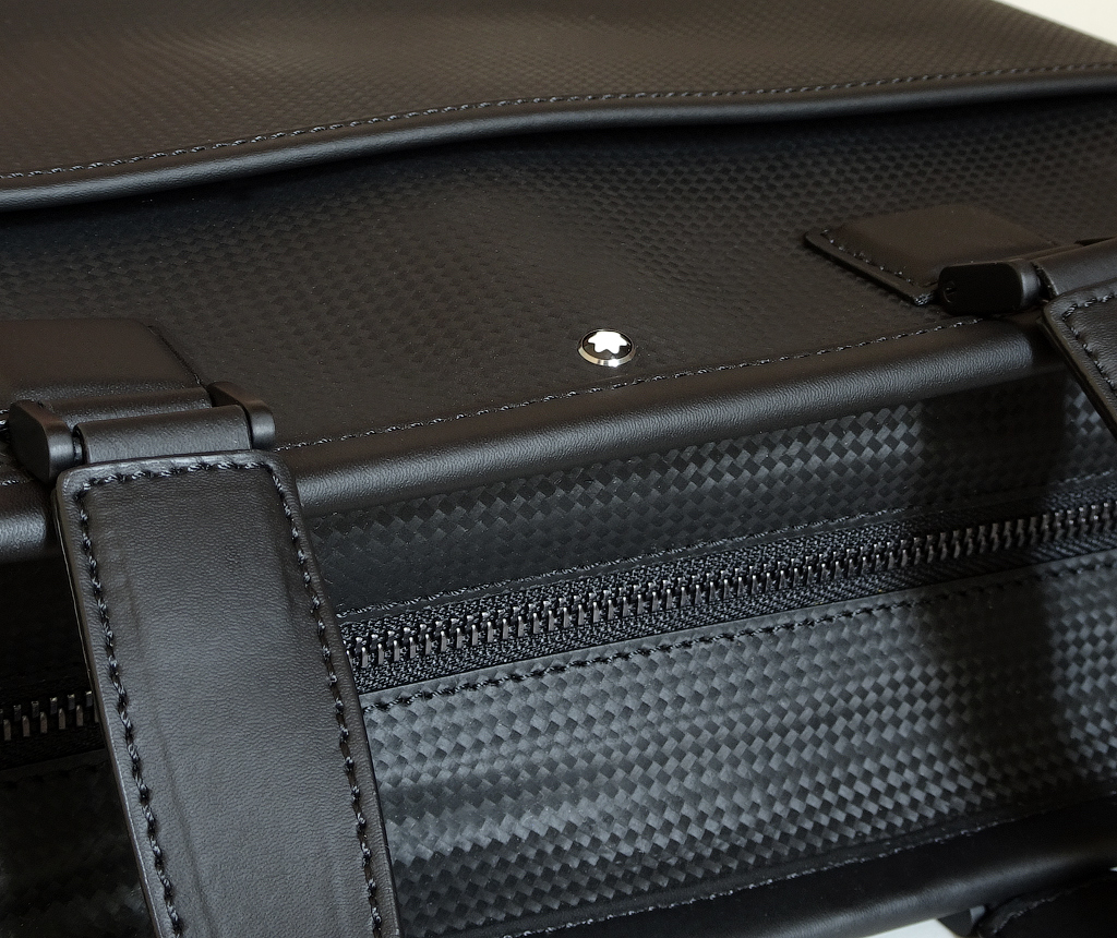 Мужская сумка в стильном дизайне выполнена из новой разработки Montblanc, уникальной кожи Montblanc Extreme с рисунком в виде плетёных углеродных волокон.