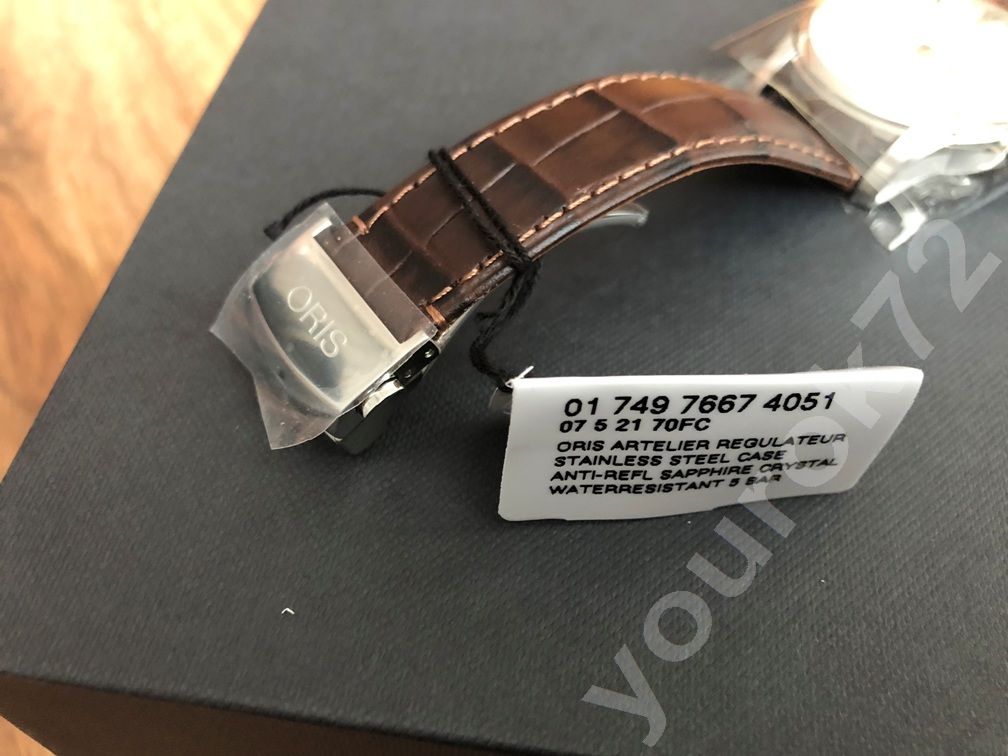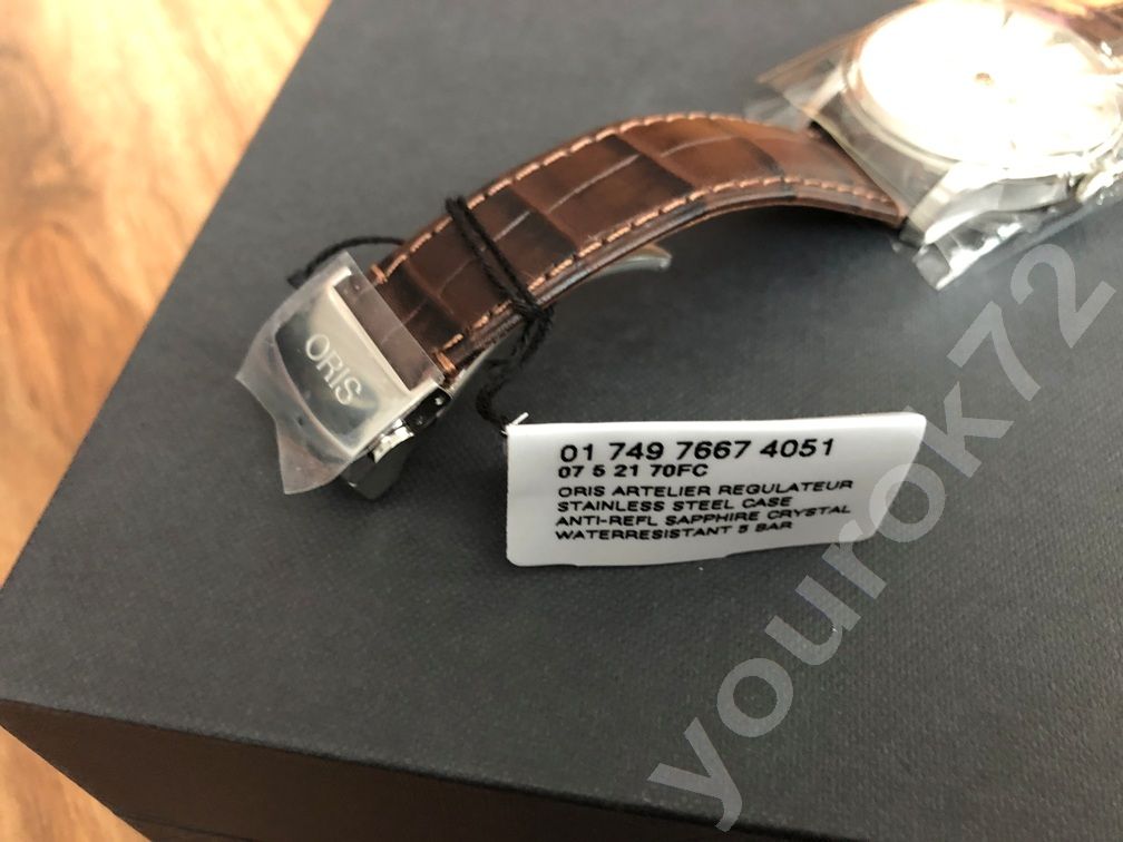 В этих часах был использован механизм Oris с циферблатом типа «регулятор» и маленькой секундной стрелкой.
