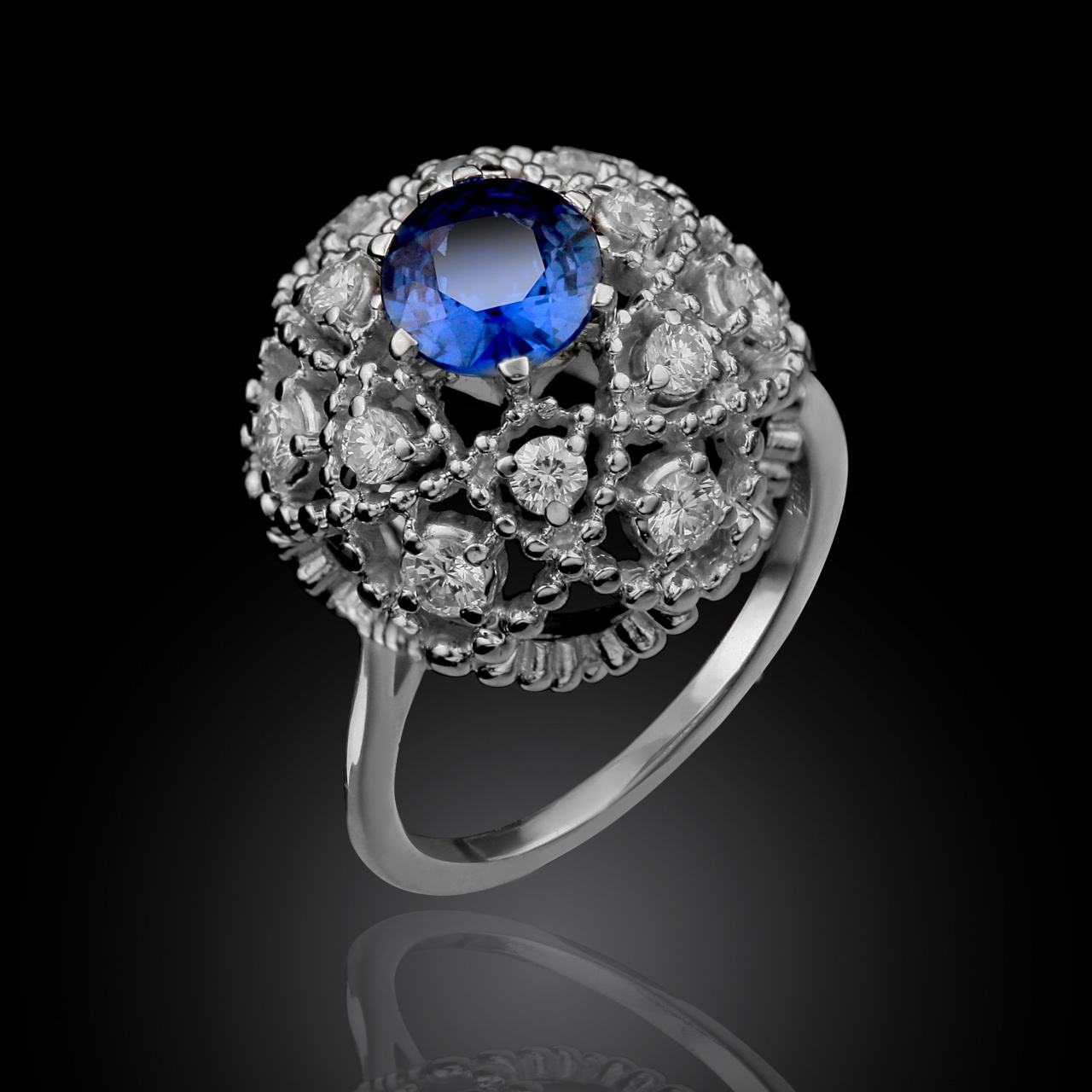 Кольцо из белого золота с сапфиром 0,93 карат и бриллиантами 0,58 карат