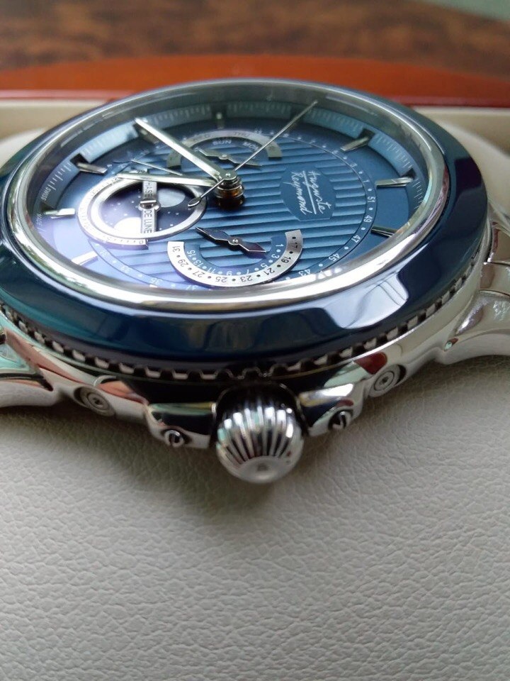 Керамический безель, удобный , элегантный корпус , великолепно сделанный браслет из полированных и матовых звеньев и выгравированным гербом на застежке . Красота.