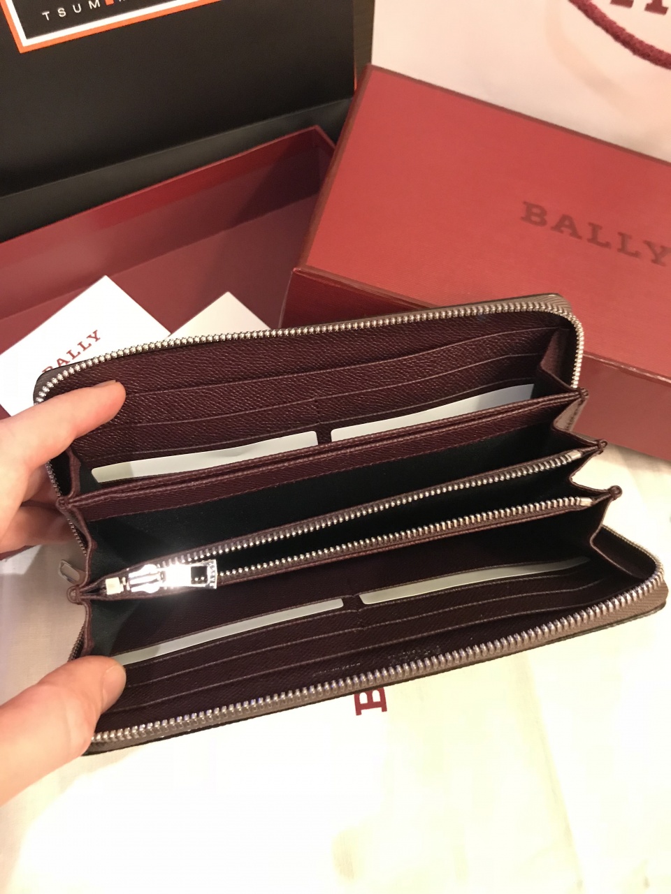 Портмоне Bally на молнии. Новое. Кожа Saffiano. Двуцветное: серый с темно-винным. Спеццена