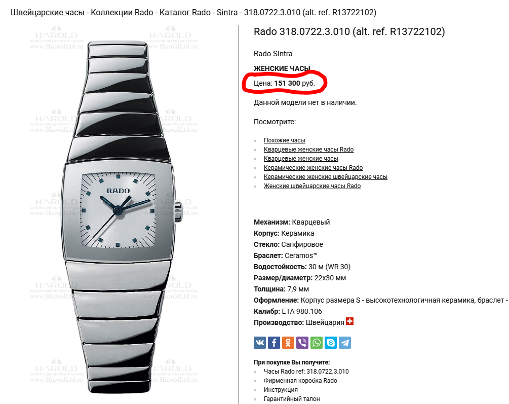 [ Женские ] RADO Sintra R13722102. Кварц / Зеркальная керамика / Синие стрелки / 22х30mm - Часовой форум Watch.ru