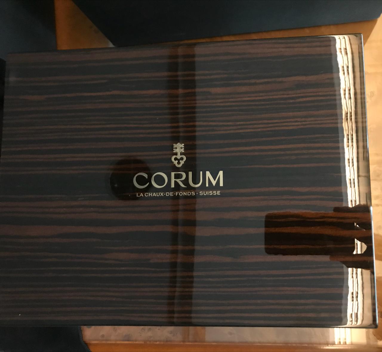 Модель оснащена функциями индикации часов, минут, секунд и экраном отображения даты, расположенном на позиции 3 часов. На серебристом гильошированном циферблате нанесены серебристые маркеры часов и минут, на фланце, легко узнаваемые бренд, изображения морских вымпелов. Прочное сапфировое стекло с антибликовым покрытием, защищает часы от повреждений и царапин. На торце заводного ключа выгравирована эмблема бренда Corum – ключ. Механизм завода - автоматический, оснащён калибром СО 398, запас хода составляет 45 часов. Ремешок часов изготовлен из кожи аллигатора с прочной застёжкой из титана. Благодаря прозрачной задней крышке корпуса можно увидеть практически все детали превосходного механизма и получать эстетическое наслаждение, глядя на его слаженную работу.
