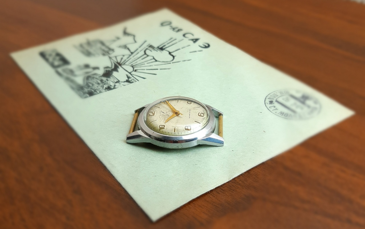 Часы (Полюс), новый кожаный винтажный ремешок, два конверта Южн. и Сев. Полюс, отправка по России первым классом. = 33 300 руб.