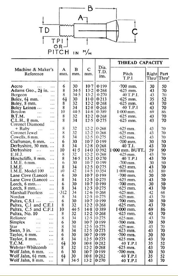 Китайцы приняли советский стандарт, резьба М7х0.75, остальные производители каждый использовал свою вариацию, наиболее распространении стандарт есть WW (Webster Whitcomb) - Schaublin SV. диаметром 6,82 мм шаг 6,25 мм и угол 55º. Не советую Вам принять советско-китайский стандарт цанги, по тому что только Китайцы производят цанги по этом стандарту. Так что в будущему Вы будете связаны для китайские цанги, тут есть и другое, китайские цанги не закалены, они мягкие.