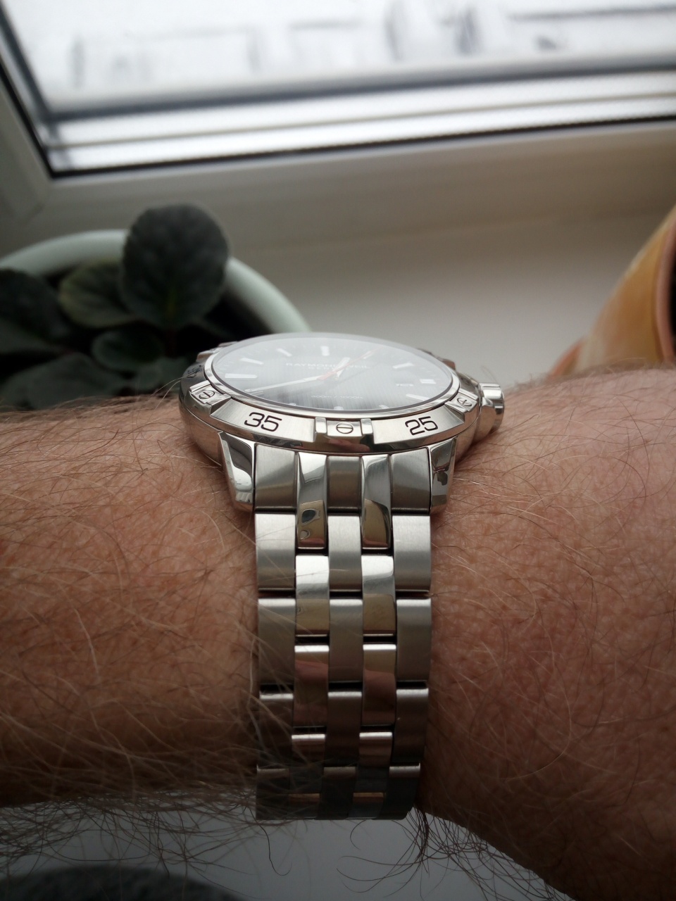 Данные часы одинаково уместны и в офисе и на отдыхе! Состояние хорошее, редкие следы от редкой и бережной эксплуатации, стекло чистое. Сидят часы на руке исключительно удобно. В комплекте только часы и 3 снятых звена браслета.